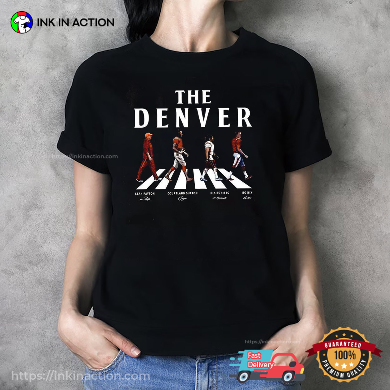 The Denver Walking Abbey Road, Broncos Football Signatures Tee
