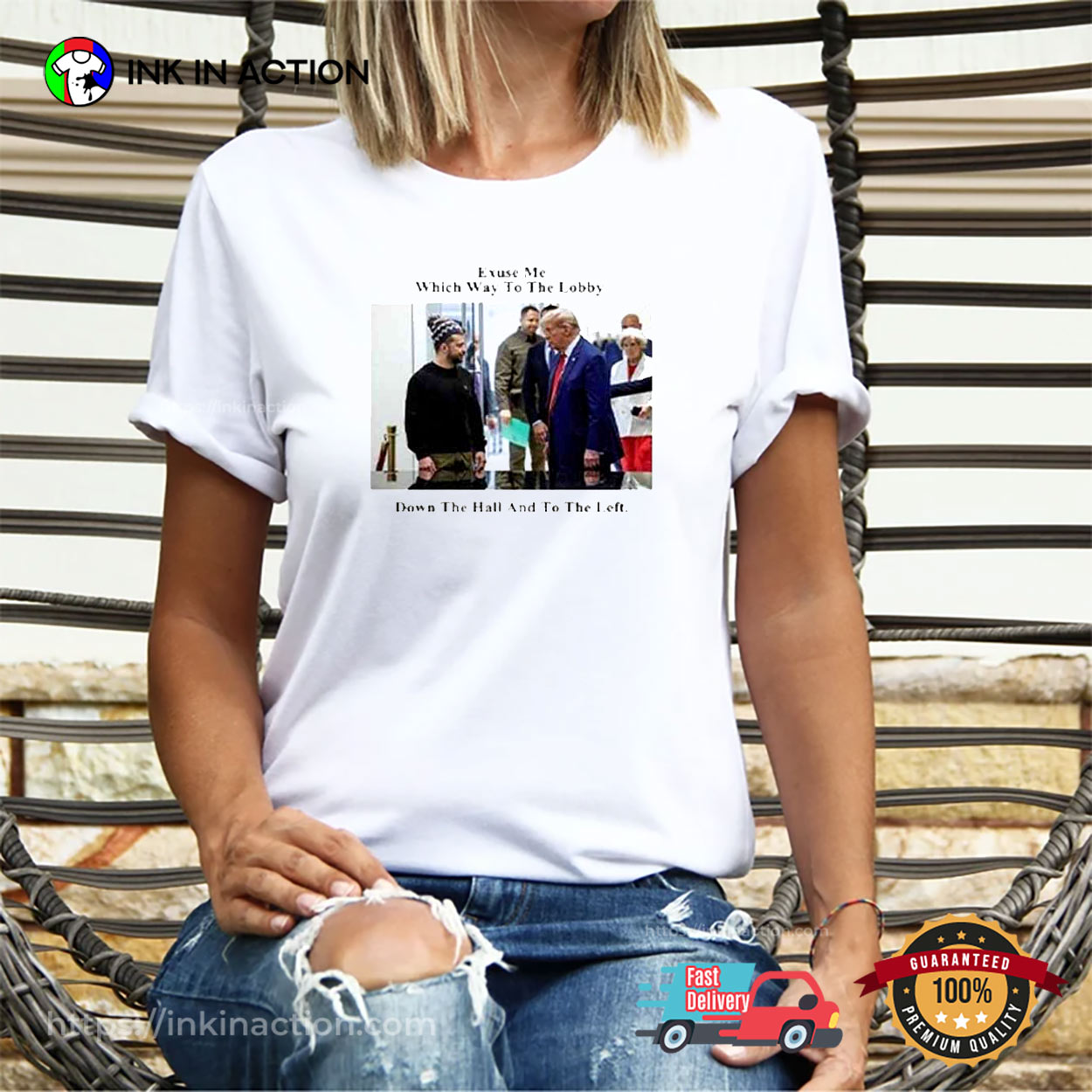 Which Way To The Lobby Funny Zelensky And Trump T-shirt