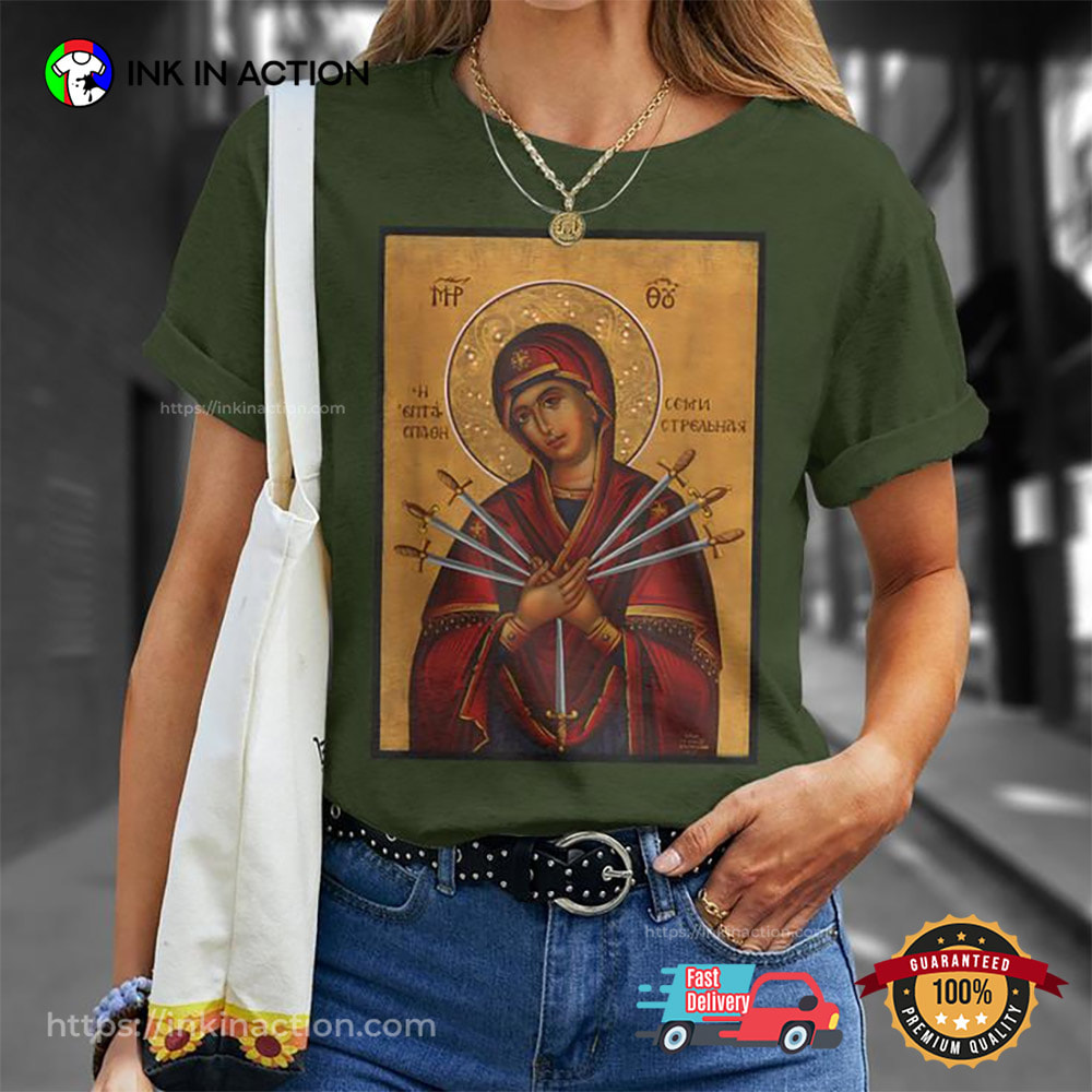 Are you ready to celebrate the holiday season with style and ease? Look no further! Our Theotokos Virgin Mary Of 7 Seven Swords Orthodox Christmas T-Shirt, printed right here in the USA, offers affordable and practical options that will make your life stress-free and your celebrations unforgettable.