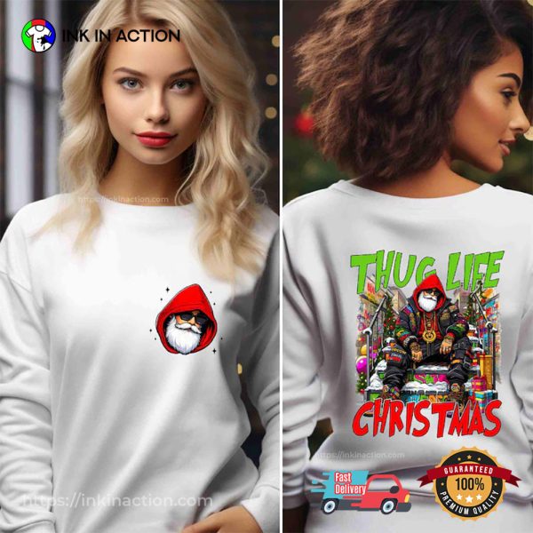 Thug Life Christmas Funny Cool Santa Claus 2 Sided T-shirt