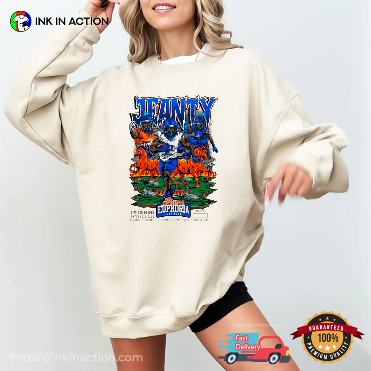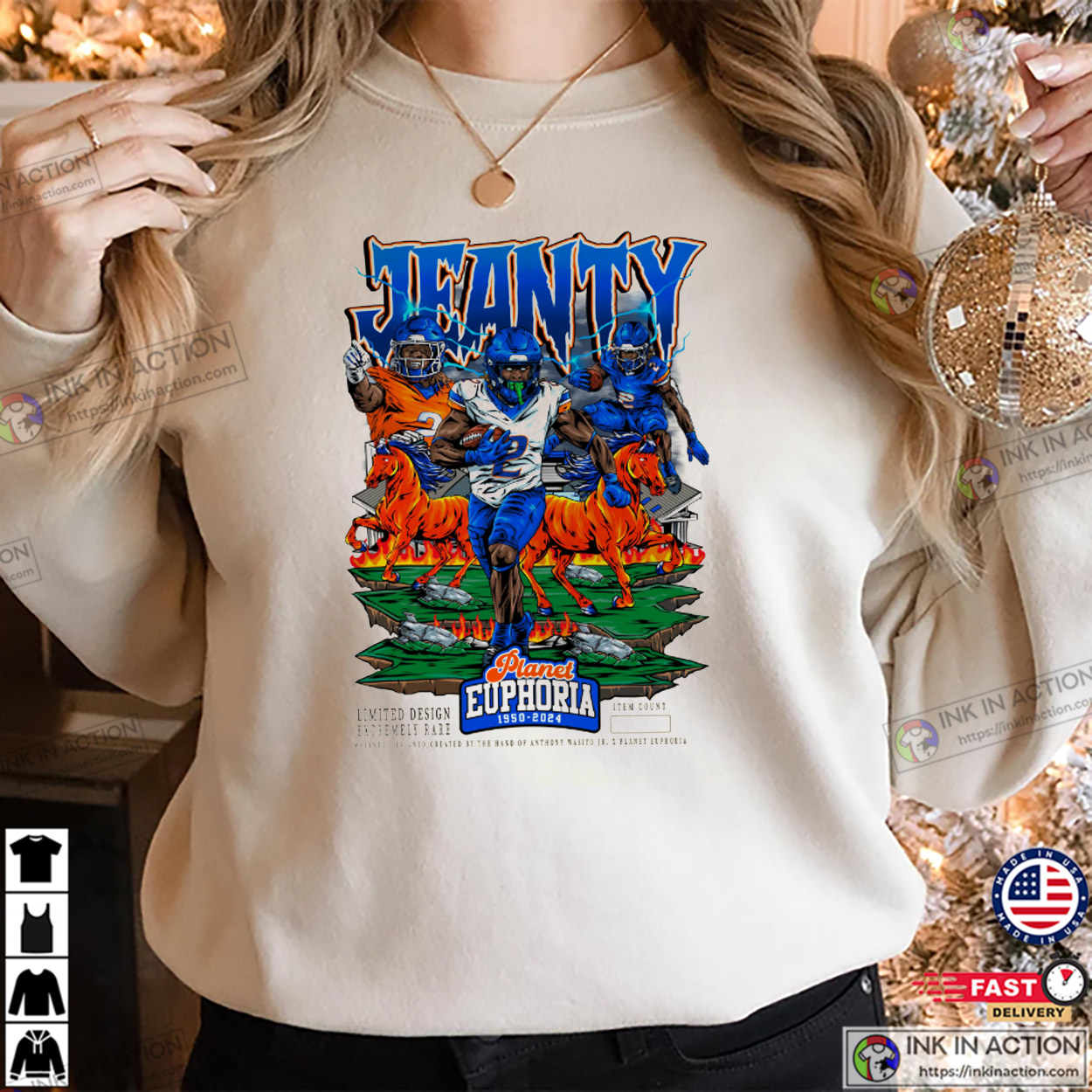 Show your support for Ashton Jeanty with this Thunder Ashton Jeanty Planet Euphobia T-shirt! Perfect for fans who admire his skills on the field, this high-quality tee features bold graphics and a comfortable fit. Whether you’re cheering from the stands or repping your favorite player daily, this shirt is a must-have.