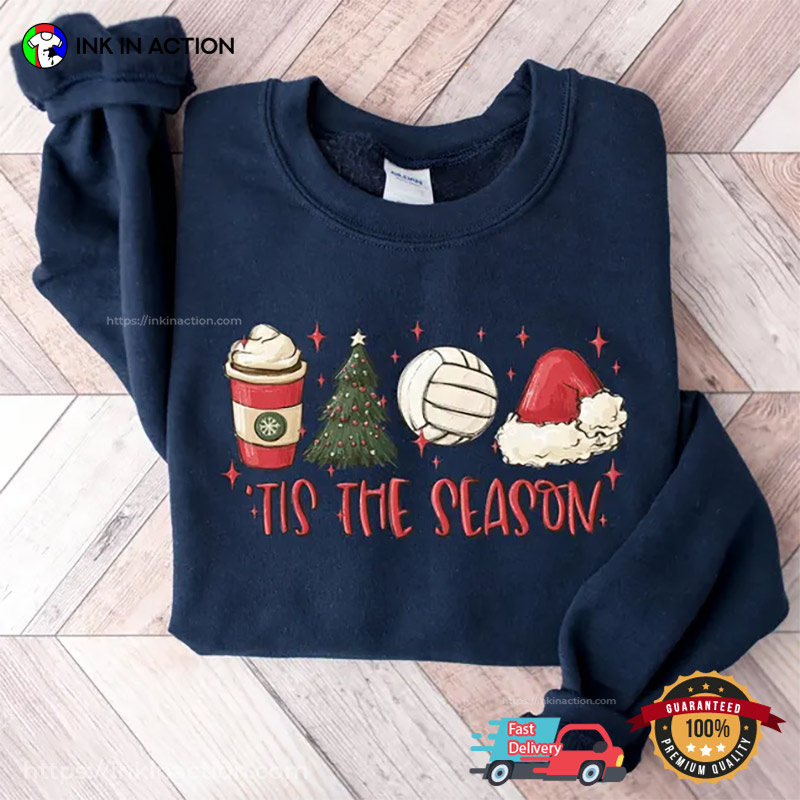 Tis The Season Volleyball Christmas T-shirt: Bump, set, spike in style.