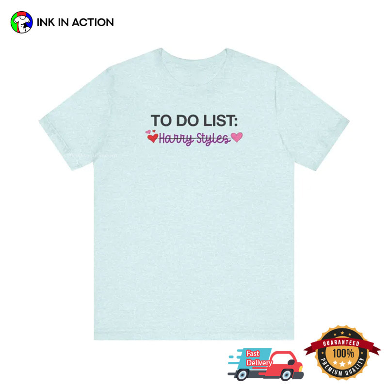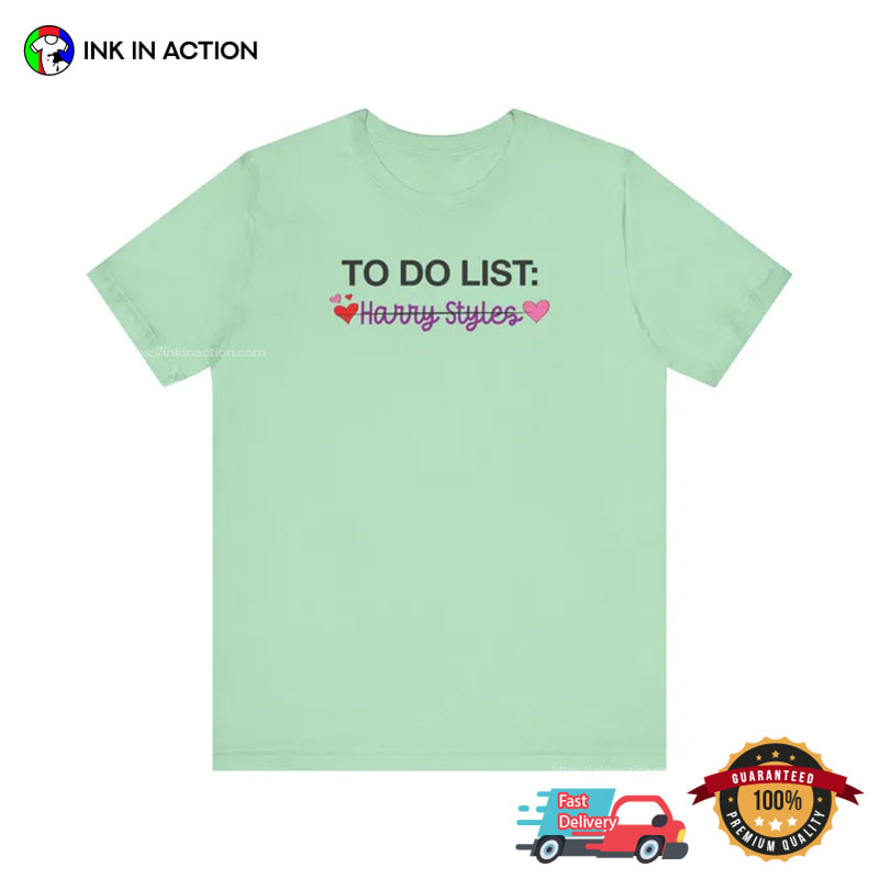 Attention music lovers, let’s check out our To Do List Harry Style Fan Girl Tee, proudly printed in the USA by InkInAction.com. With its unique and eye-catching design, this shirt is sure to turn heads and start conversations.