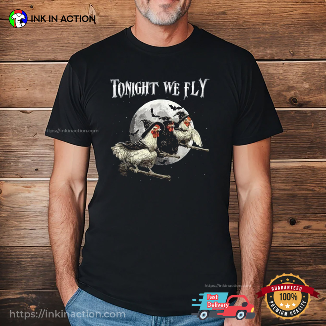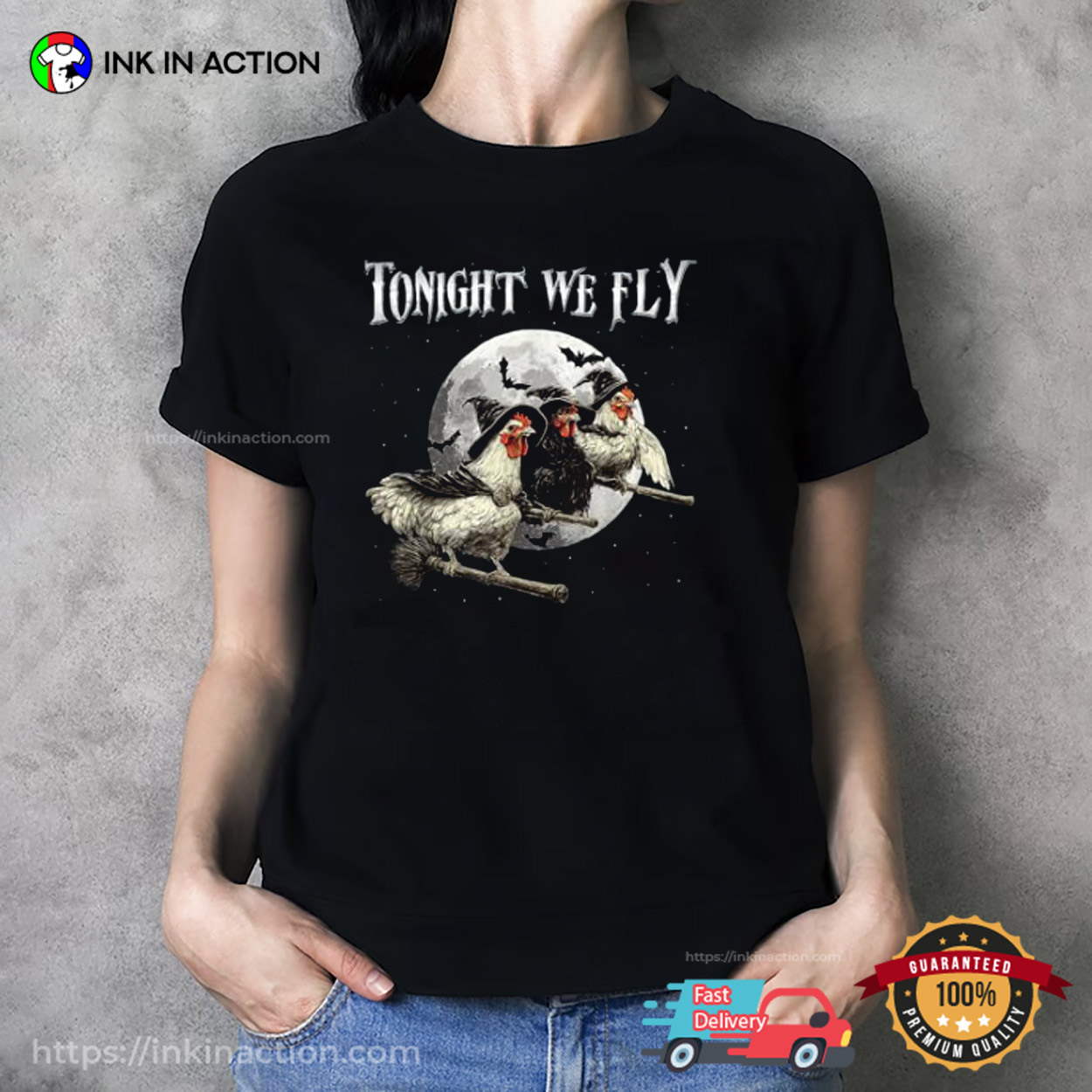 Tonight We Fly Funny Chicken Witches Halloween Shirt