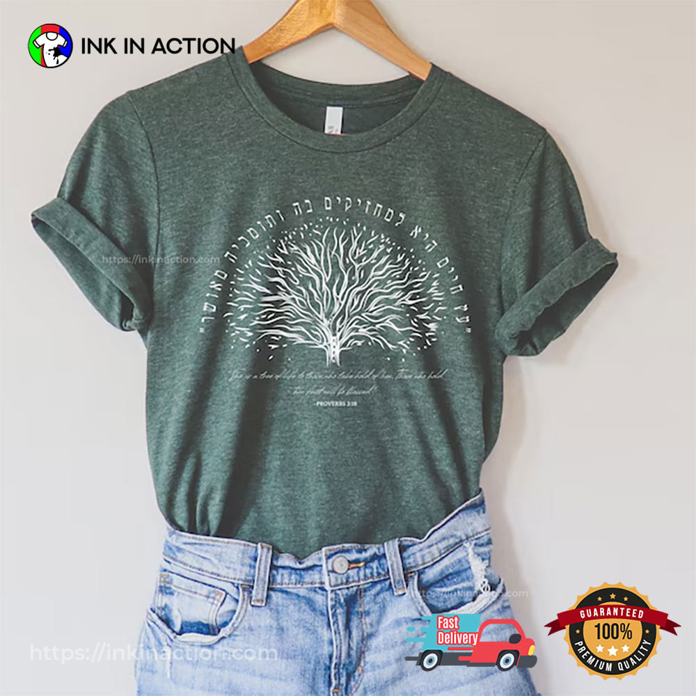 Are you ready to celebrate the holiday season with style and ease? Look no further! Our Tree Of Life Verse In Hebrew Purim Holiday Traditions T-shirt, printed right here in the USA, offers affordable and practical options that will make your life stress-free and your celebrations unforgettable.