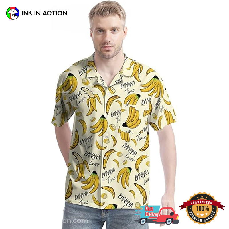 Bring the Aloha Spirit everywhere you go with Ink In Action’s Tropical Fruit Banana Lover Hawaiian Shirt!