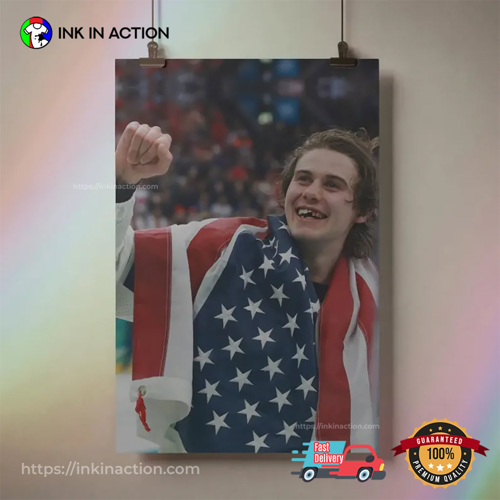 The USA Ice Hockey Jack Hughes Champion Poster brings high-speed hockey excitement to your space. Printed on premium material with sharp detail and vibrant color, it’s perfect for bedrooms, fan caves, or offices. A must-have collectible for supporters, this poster captures the intensity and brilliance of a rising NHL star.