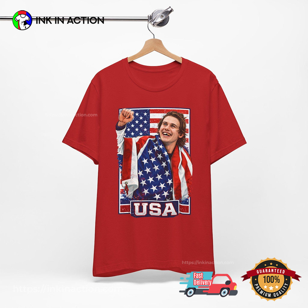 Our USA Ice Hockey Jack Hughes Olympics Shirt is perfect for those who want to show off their love for their favorite sport or team while staying comfortable and stylish.