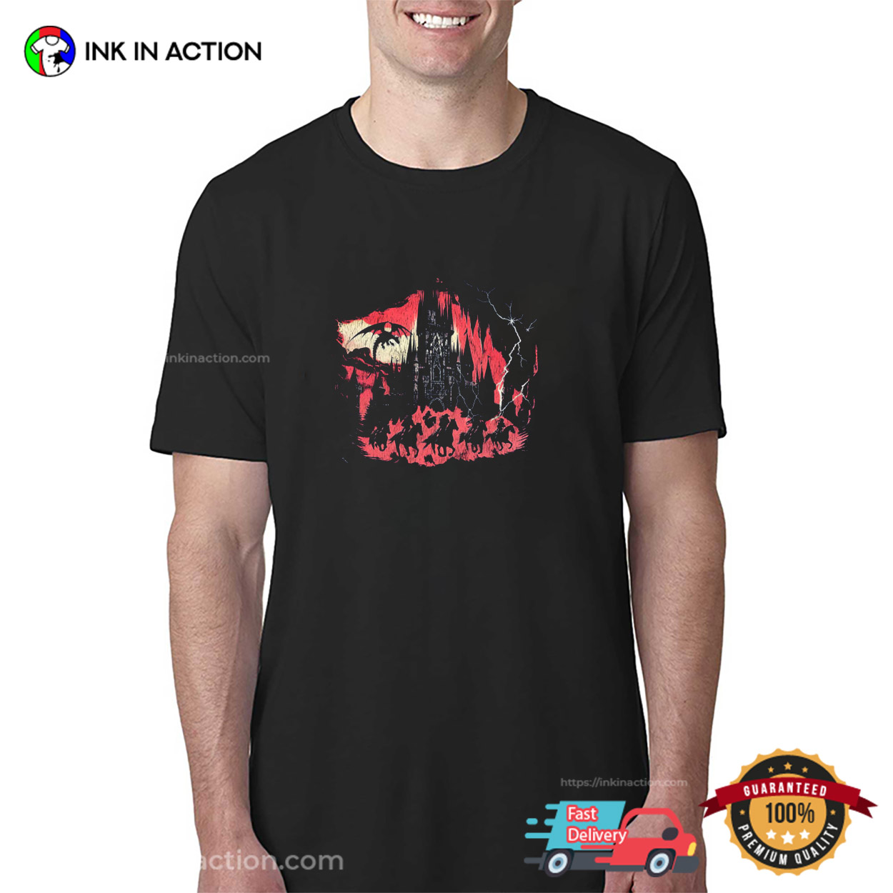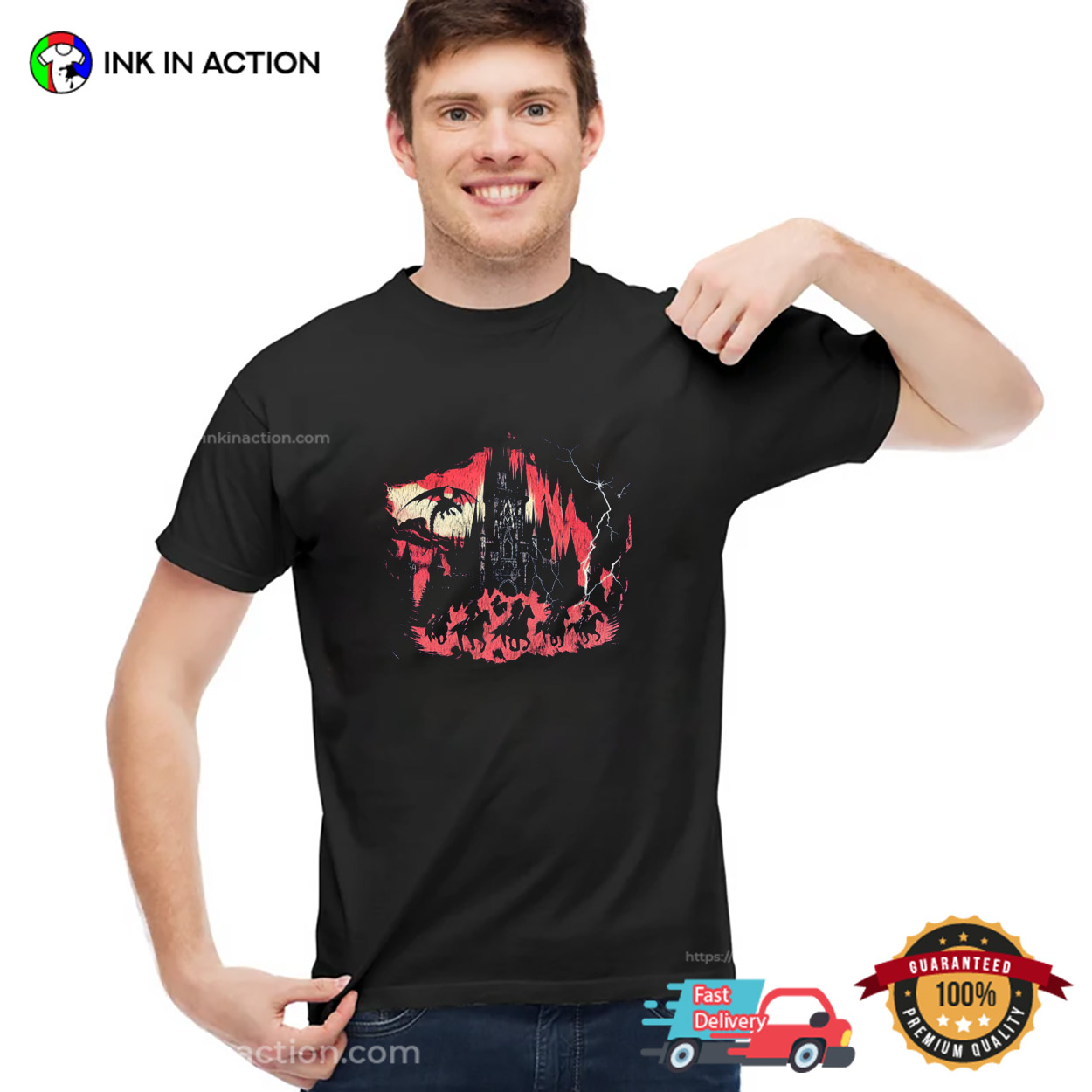 With Ink In Action’s trending shirt designs, you may go out with your pals in style. Have you ever been giddy about great trending t-shirts? Want something that will keep you consistently warm on those long, chilly nights? So stop looking now! You own this Vintage Dragon Dark Fantasy Graphic T-Shirt.