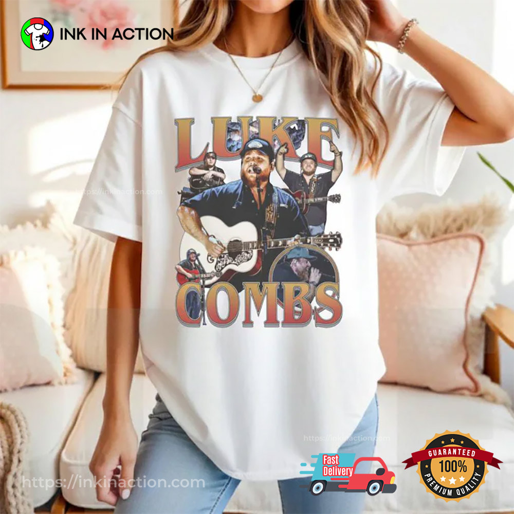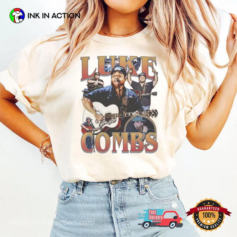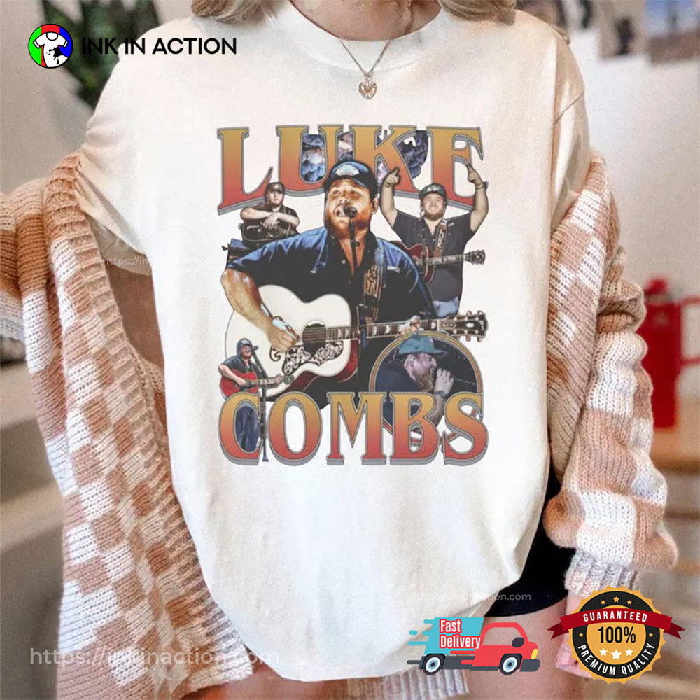 Attention music lovers, let’s check out our Vintage Luke Combs Country Music T-shirt, proudly printed in the USA by InkInAction.com. With its unique and eye-catching design, this shirt is sure to turn heads and start conversations.