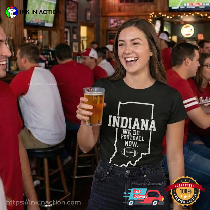Our We Do Football Now Funny Indiana Hoosiers Football Shirt is perfect for those who want to show off their love for their favorite sport or team while staying comfortable and stylish.