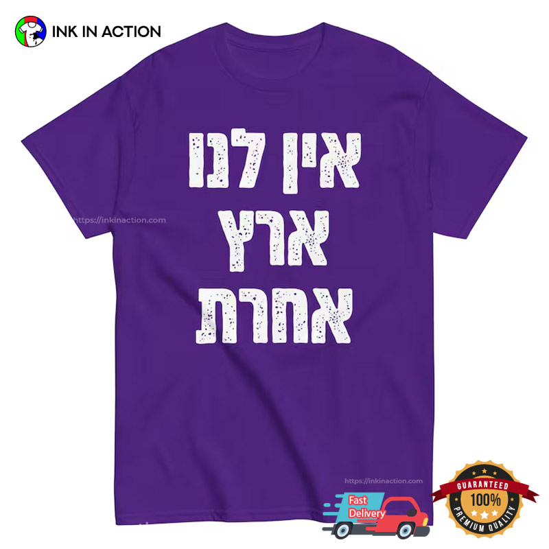 In the ever-evolving fashion world, staying on trend is not just a choice; it’s a statement. Our We Have No Other Land Hebrew Pro Israel T-shirt are more than garments; they are canvases of self-expression, reflecting the spirit of the times. We understand that fashion is a language, and our trending shirts speak volumes.