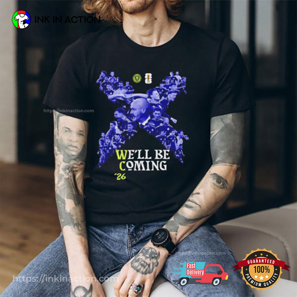Are you a Soccer fan? Get ready for the UEFA Champions League event with our We’ll Be Coming 26 World Cup Shirt to show off your love for your favorite team, whether it’s Real Madrid, Manchester United, or Manchester City, we got it all!