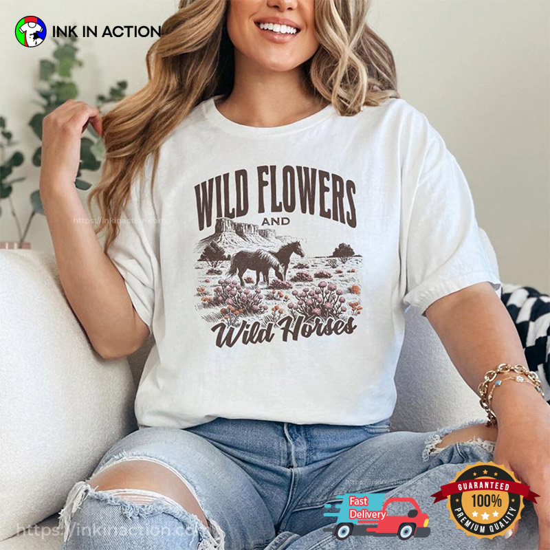Ride in style with the Wildflowers And Wild Horses West Wild T-shirt, perfect for those who love Western vibes and country flair! Featuring fun, bold graphics like boots, hats, or rodeo themes, this tee is made from soft, high-quality cotton for all-day comfort. Whether you’re heading to a country concert, rodeo, or just embracing your inner cowgirl, this shirt adds a touch of rustic charm to any outfit. Available in various sizes and colors, it’s a wardrobe must-have. Get your Cowgirl T-shirt today and show off your wild spirit! 🤠✨👢