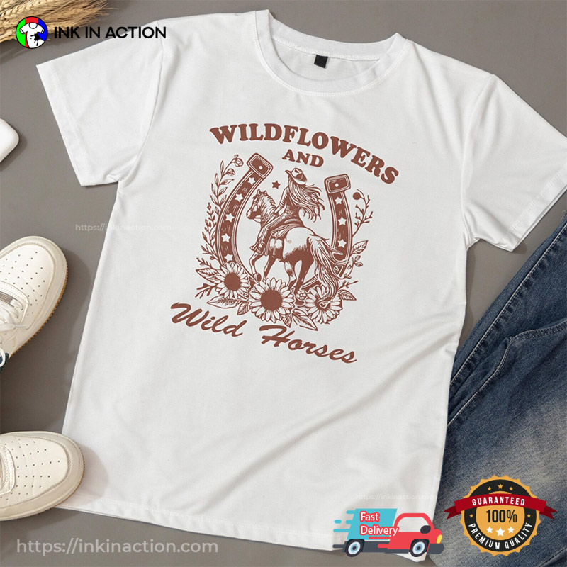 Wildflowers And Wild Horses Western Cowgirl On Horse T-shirt