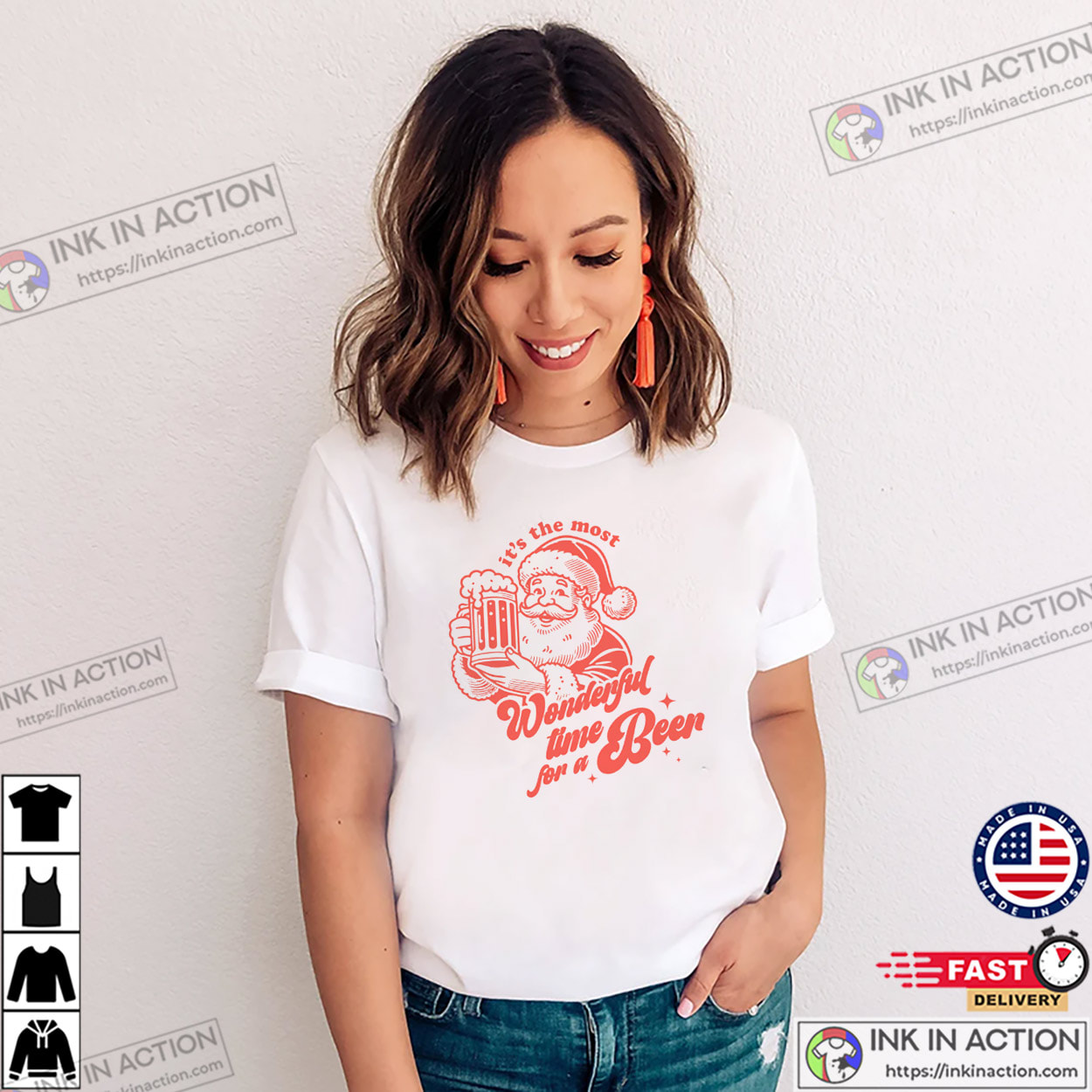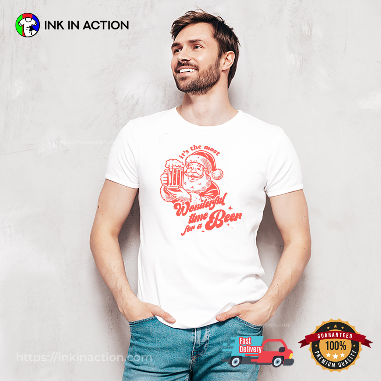 Wonderful Time For A Beer Retro Santa Claus Shirt