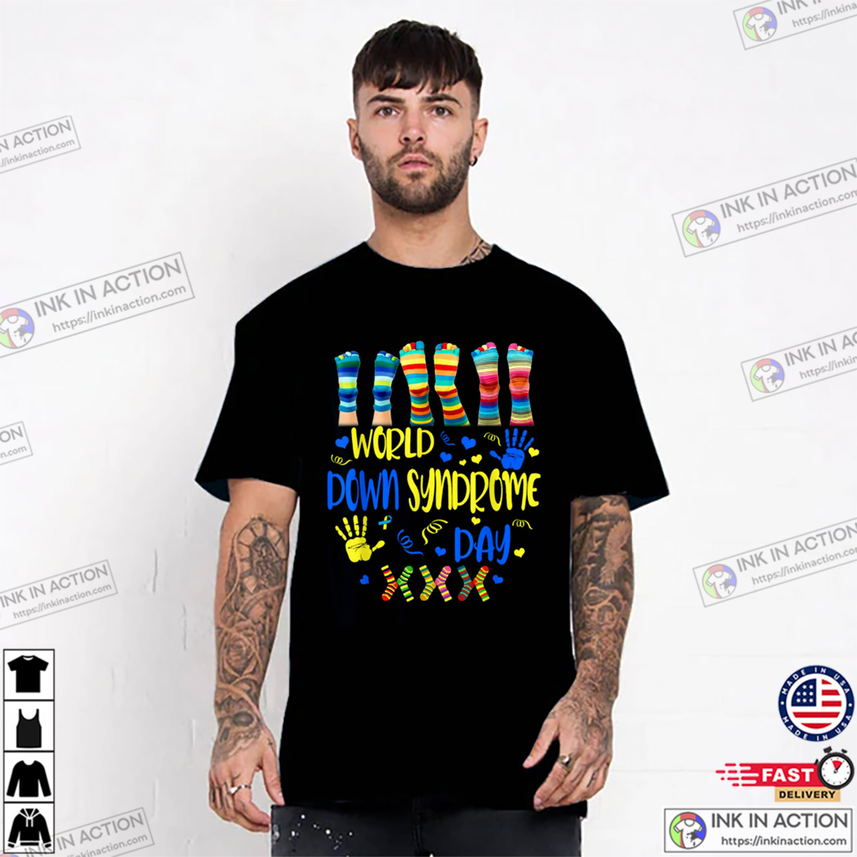 Show your support and raise awareness with this World Down Syndrome Day Awareness Socks Down Right T-shirt! Designed with the signature blue and yellow colors, this shirt is a meaningful way to celebrate inclusion, love, and advocacy for individuals with Down syndrome.
