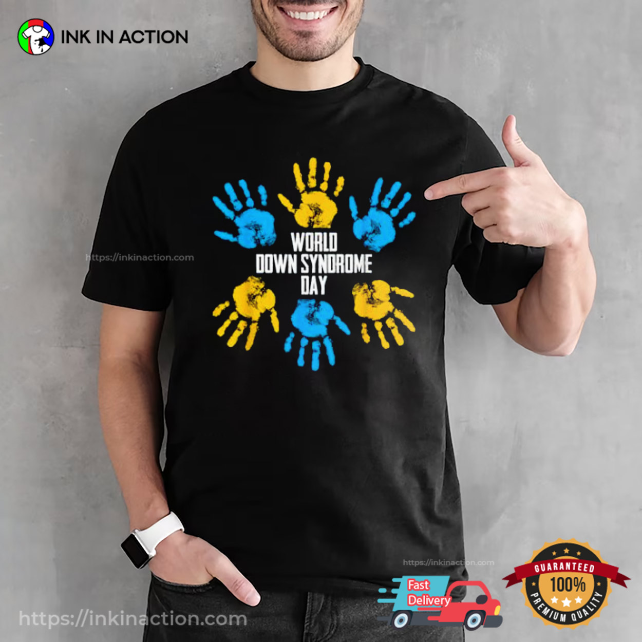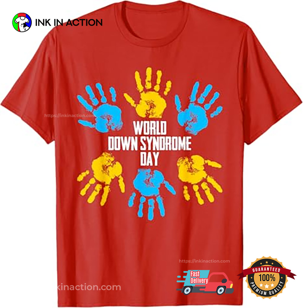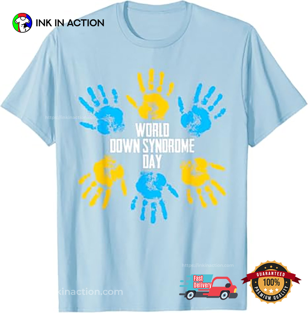 Show your support and raise awareness with this World Down Syndrome Day Hand Print Sped T-shirt! Designed with the signature blue and yellow colors, this shirt is a meaningful way to celebrate inclusion, love, and advocacy for individuals with Down syndrome.