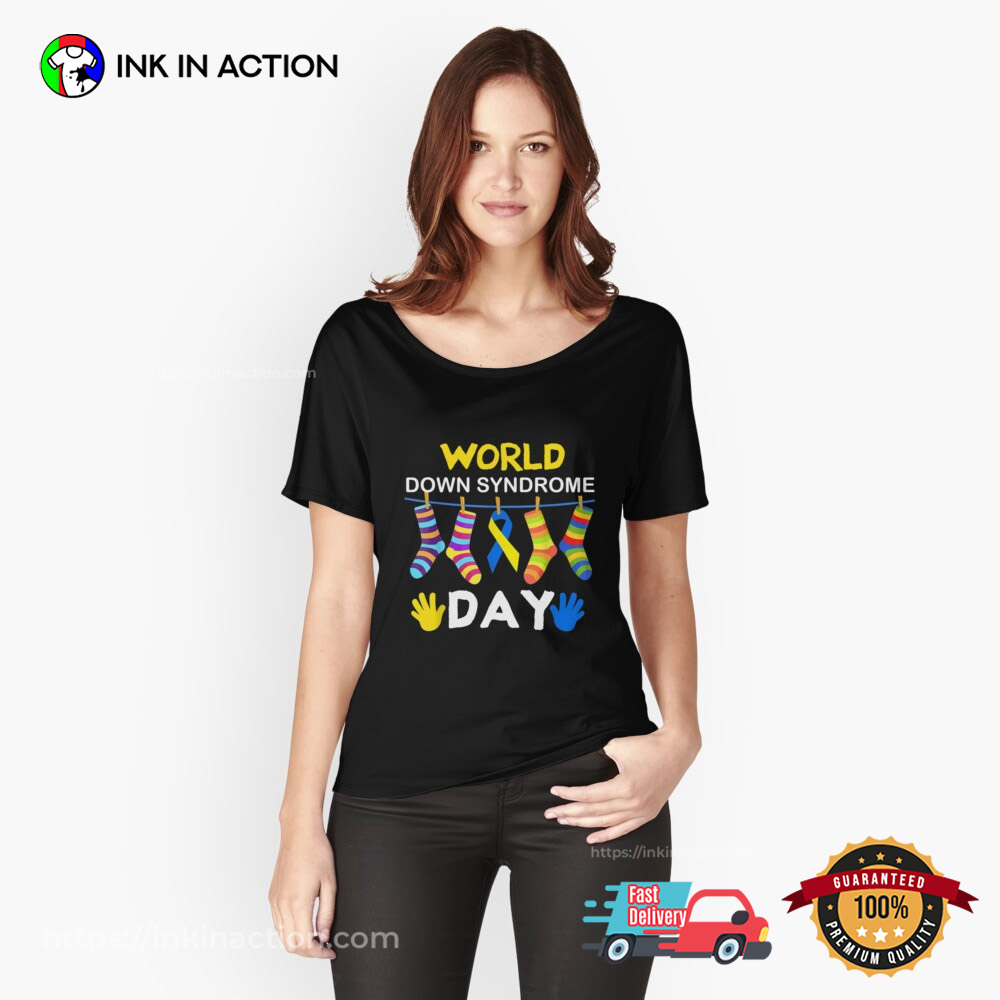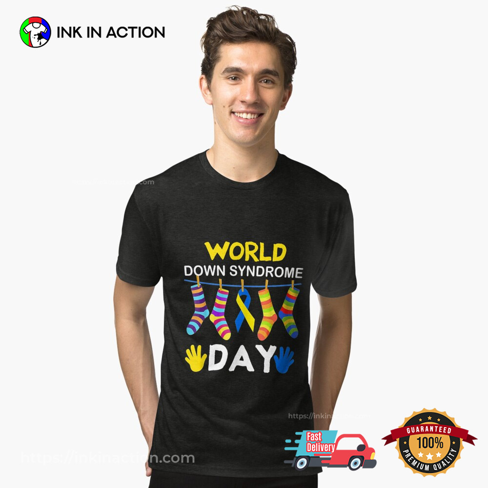 Show your support and raise awareness with this World Down Syndrome Day Socks Down Right T-shirt! Designed with the signature blue and yellow colors, this shirt is a meaningful way to celebrate inclusion, love, and advocacy for individuals with Down syndrome.