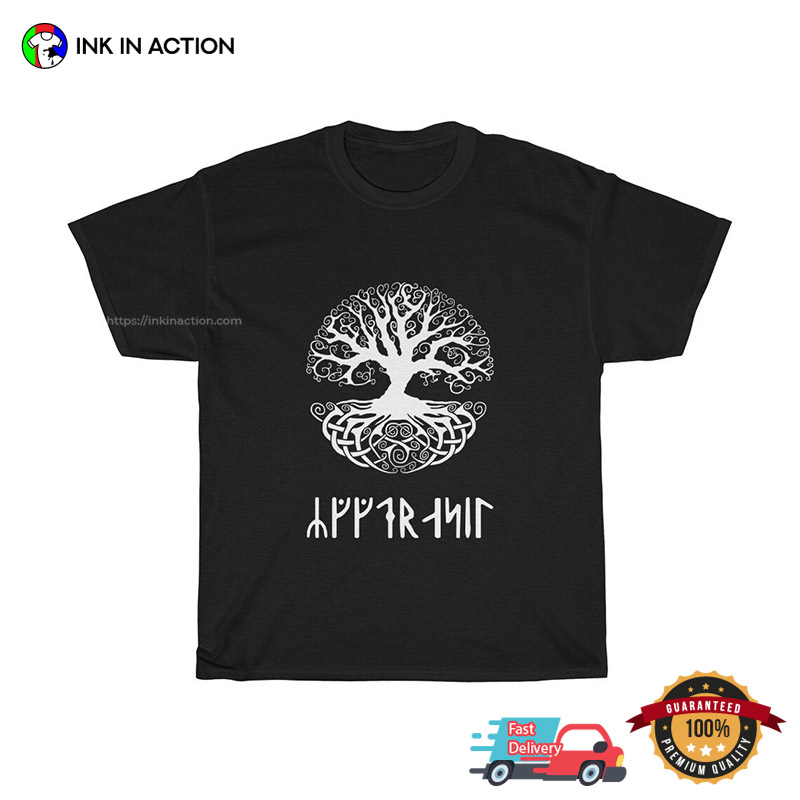 Are you ready to celebrate the holiday season with style and ease? Look no further! Our Yggdrasil Viking Norse Runes Tee, printed right here in the USA, offers affordable and practical options that will make your life stress-free and your celebrations unforgettable.