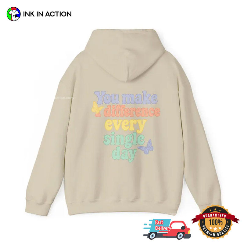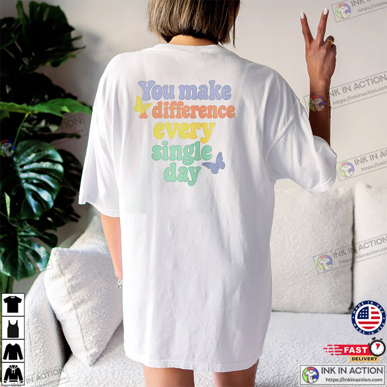 Are you ready to celebrate the holiday season with style and ease? Look no further! Our You Make A Difference Every Single Day Back T-shirt, printed right here in the USA, offers affordable and practical options that will make your life stress-free and your celebrations unforgettable.