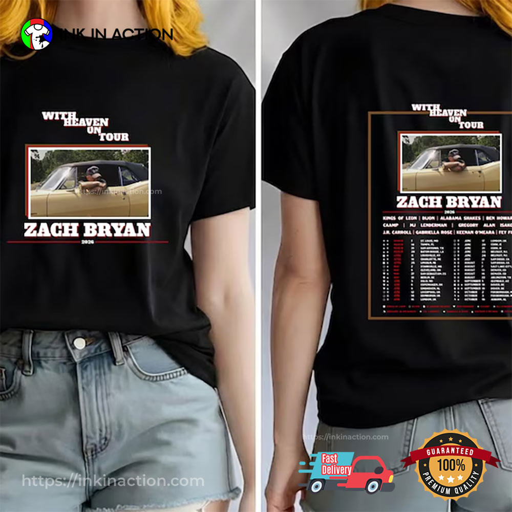Perfect for concerts, casual outfits, or any country-music lover, this shirt delivers comfort and style while showcasing your love for heartfelt lyrics and raw acoustic energy. A must-have piece for any Zach Bryan fan heading into the With Heaven On Tour era.Attention music lovers, let’s check out our music t-shirt, proudly printed in the USA by InkInAction.com. With its unique and eye-catching design, this shirt is sure to turn heads and start conversations.